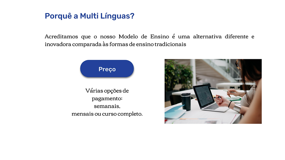 A Multi Línguas é uma escola virtual de Línguas Estrangeiras que acredita que a aprendizagem deve ser interactiva, comunicativa e online.